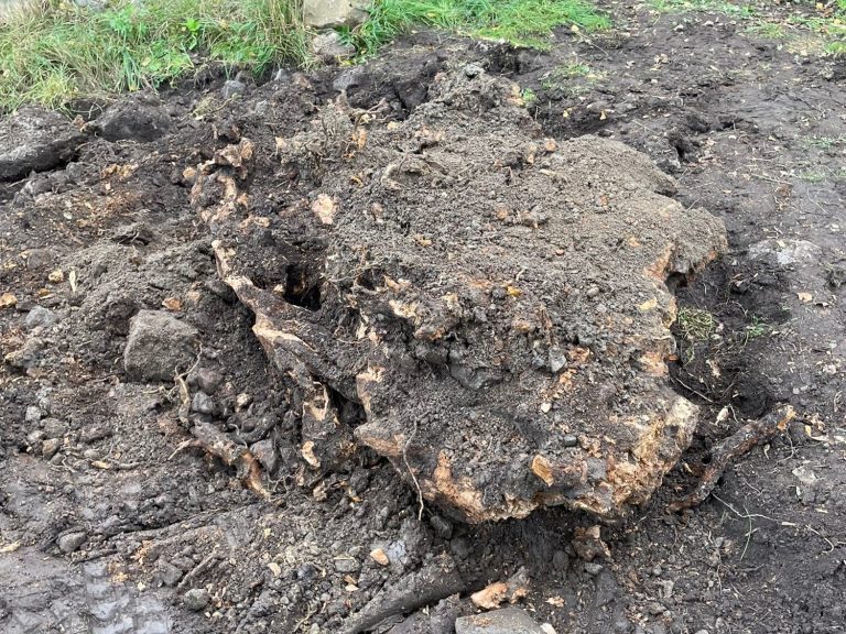 Bortgrävning av rotsystem av en björk hos nöjd kund.